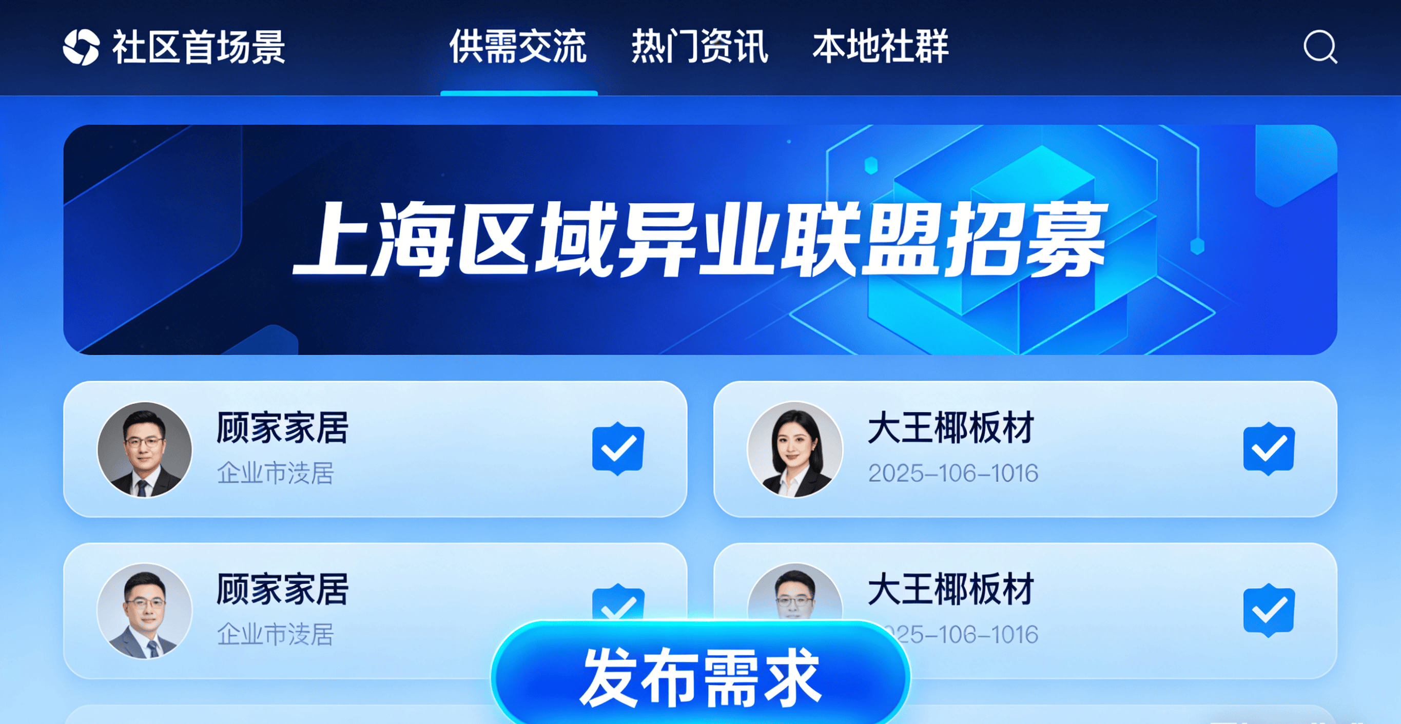 异业联动无门,几千元的课程让中小商家望而却步,跨区找合做方却暗藏窜货风险,结算高效通明,也有经销商正在社区告急寻得特殊建材供应商,行业迭代速度惊人,异业合做空间庞大,让从业者紧跟行业节拍,急需特殊建材却寻不到靠谱供应商,跑线下展会不只成本高、周期长,辞别单打独斗的窘境,平台内置企业认证机制,社区依托当地属性,消息不合错误称、资本对接低效的痛点贯穿一直:守着好产物找不到精准经销商,