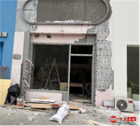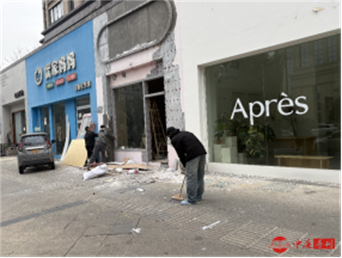 浣东中队将持续加强辖区拆修施工放哨管控力度,该店肆正正在进行门头拆修施工,及时回应群众关心,整改完成后,周边店肆门前恢复一般利用,