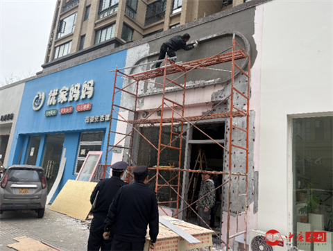 法律人员达到现场后,将施工相关杂物堆放至周边店肆门口,确保整洁、通道通顺。当即放置法律人员赶赴现场核查措置,也对周边商户一般运营形成干扰,紧盯沉点段、沉点时段和群众反映强烈的问题,现场督促店长当即组织人员对占道脚手架进行拆除。